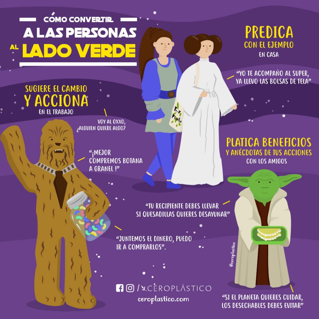 Constantemente muchas personas me han preguntado qué pueden hacer para que sus familiares y amigos sean más “ecofriendlys” y es que cuando comienzas un estilo de vida Zero Waste es inevitable que las personas de tu entorno no se den cuenta y te conviertes en la oveja verde de la familia.He aprendido a convivir y adaptarme lo más posible a reuniones con amigos, familiares y roomies sin que esto afecte mi estilo de vida, pero entiendo perfectamente lo frustrante que puede ser ver que las personas que te rodean no cambian aún sus hábitos.¿Puedes convertir a otras personas en ecológicas?No. Lamento informarte que ni tú ni yo tenemos el súper poder de cambiar a los demás. Lo único que puedes hacer es cambiar tú.¿Puedes contagiar a otras personas para que sean ecológicas?Definitivamente SÍ. Y este bichito de mejorar los hábitos en beneficio del planeta es muy poderoso y se está expandiendo por todo el mundo.Desde que comencé a vivir reduciendo lo más posible la basura que generaba, me obligué firmemente a cumplir 2 reglas: